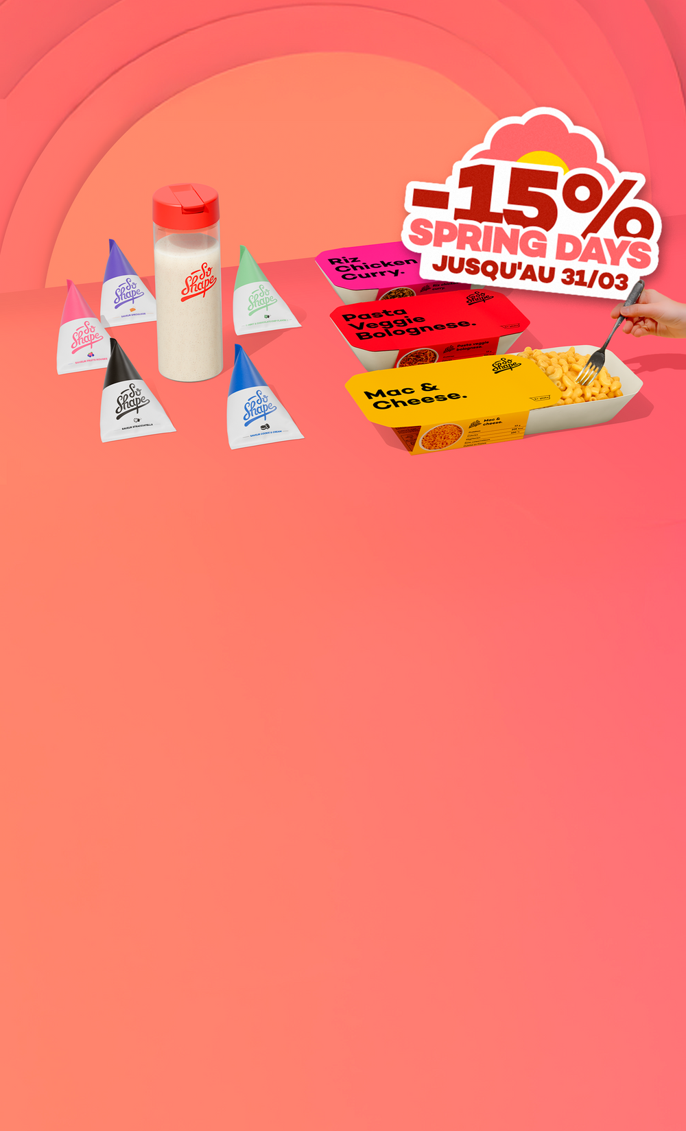 GranolaLes céréales classiques sont trop sucrées. Le Granola So Shape, c’est des protéines ET très peu de sucre. -